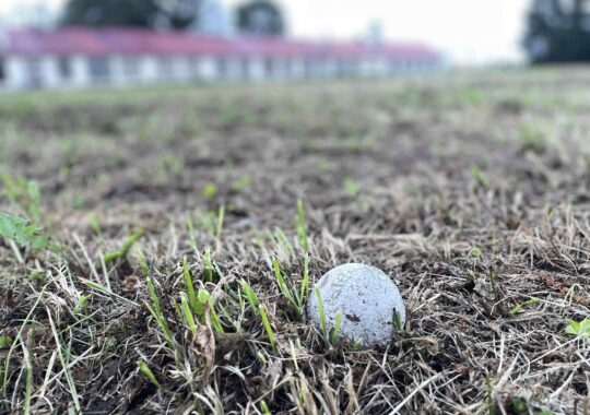 ちょうど口元にある椅子の座面をかじかじして、ついてしまった歯形の横に、
