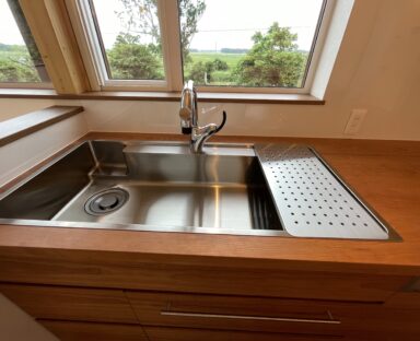 シンクもオーダー。水切りをつけました。水切りもオーダーなので、サイズは自由