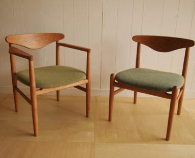 ダイニングチェアーとして使用する時、ご主人はアーム付きを、奥様は頻繁に立ったり座ったりするので、