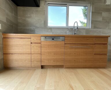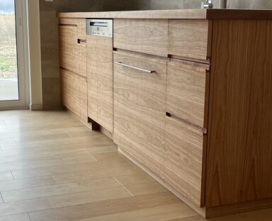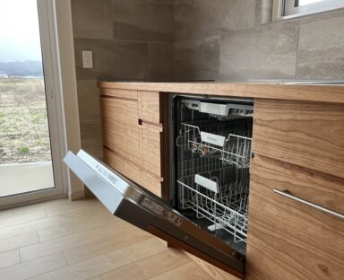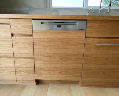 ミーレの食洗機。もちろん前パネルの木目を繋げています。