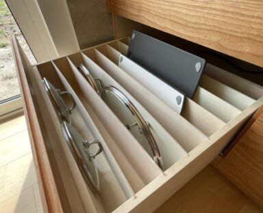 鍋の蓋を収納するための可動の仕切り。これも収納しやすい!